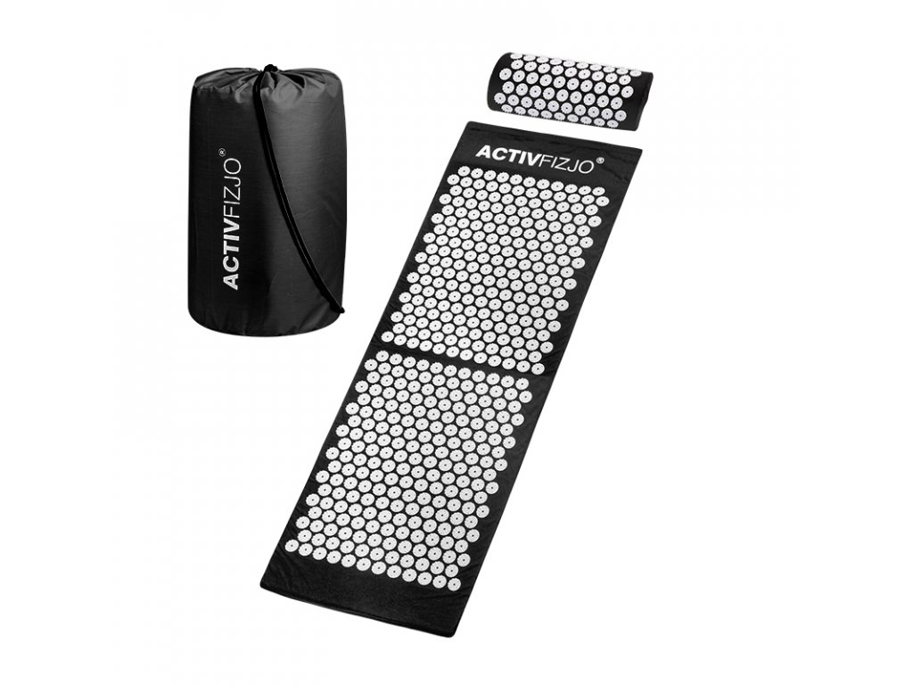 Nagyméretű akupresszúrás matrac párnával - fekete