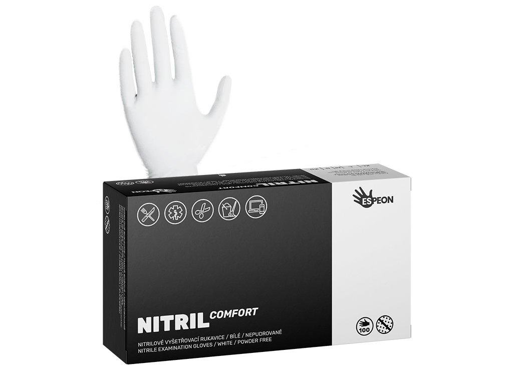 Nitril kesztyű COMFORT – fehér, pormentes, S méret, 100 db