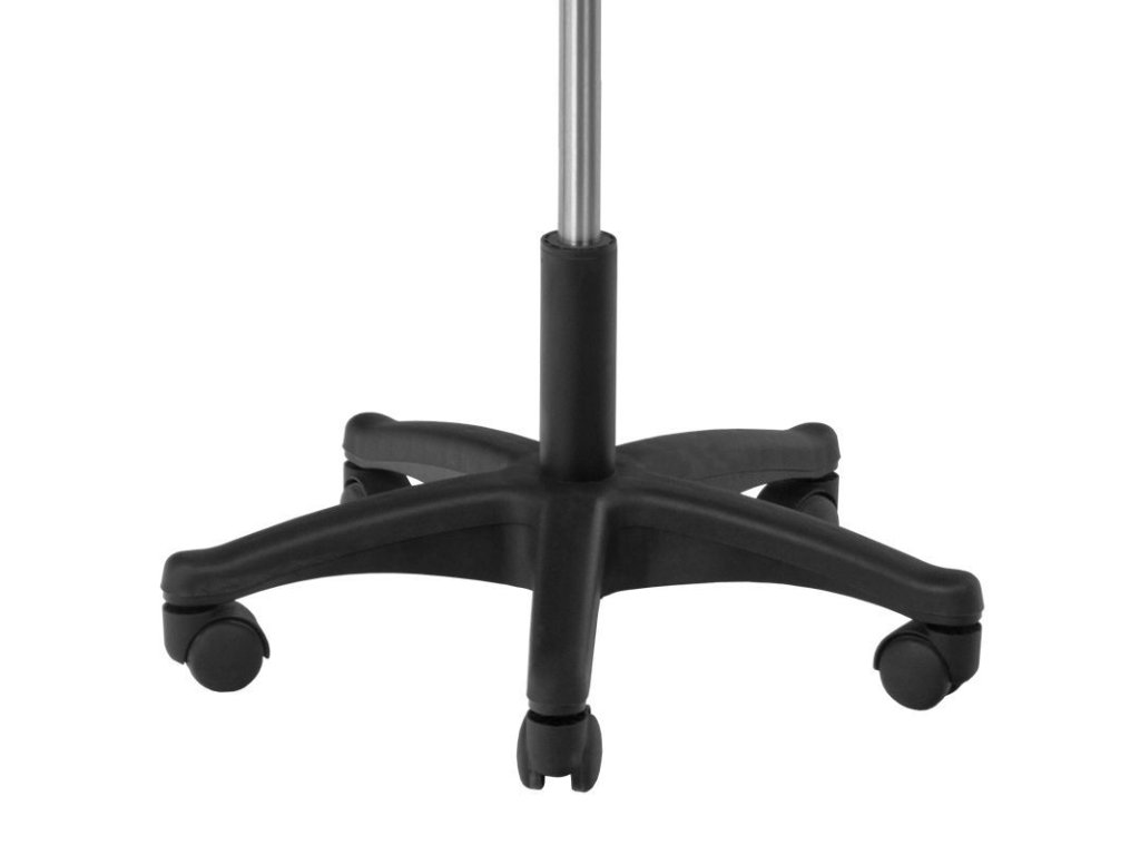 A műanyag ötágú lábcsillag stabil alapot biztosít, míg a gördülékenyen mozgó kerekek lehetővé teszik a szabad mozgást a kezelőhelyiségben. A szék teljes súlya 7,5 kg, teherbírása pedig 110 kg, így biztosítva a hosszú távú megbízható használatot.
