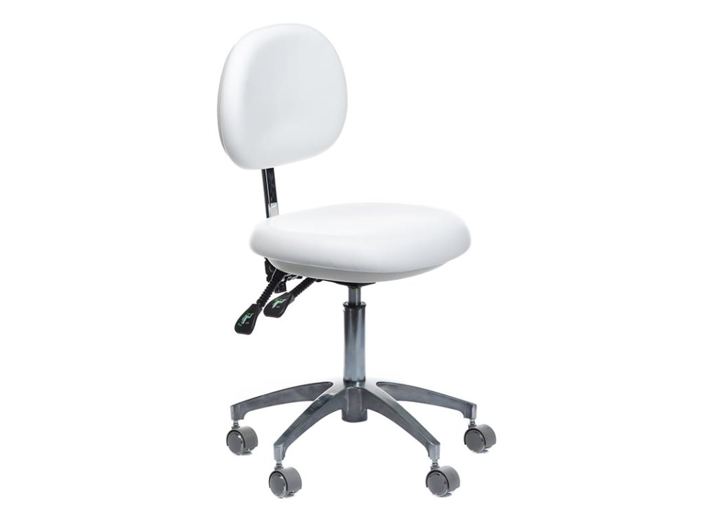 A 45 cm széles és 40 cm mély ülőfelület ergonomikus formájú, és kiváló minőségű rugalmas habszivacsból készült. A kárpitozáshoz használt zökkenőmentes TECHNOGEL bevonat rendkívül ellenálló, higiénikus, puha tapintású és könnyen tisztítható – ideális minden professzionális környezetben.