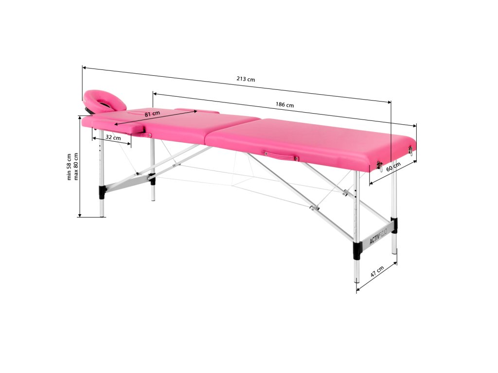 Összecsukható masszázságy Komfort Activ Fyzio – 2 szekciós, alumínium, rózsaszín