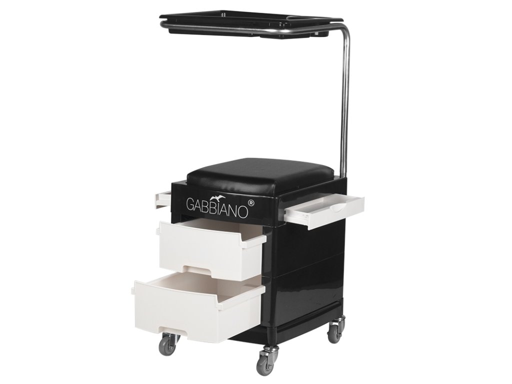 A 16 PLUSZ pedikűr asszisztens egy praktikus és sokoldalú kozmetikai bútor, amely ideális választás professzionális szalonokba. Ez a modern kialakítású, fekete-fehér színű eszköz egyszerre működik mobil asszisztensként és kényelmes zsámolyként, így helytakarékos és hatékony megoldást kínál.
