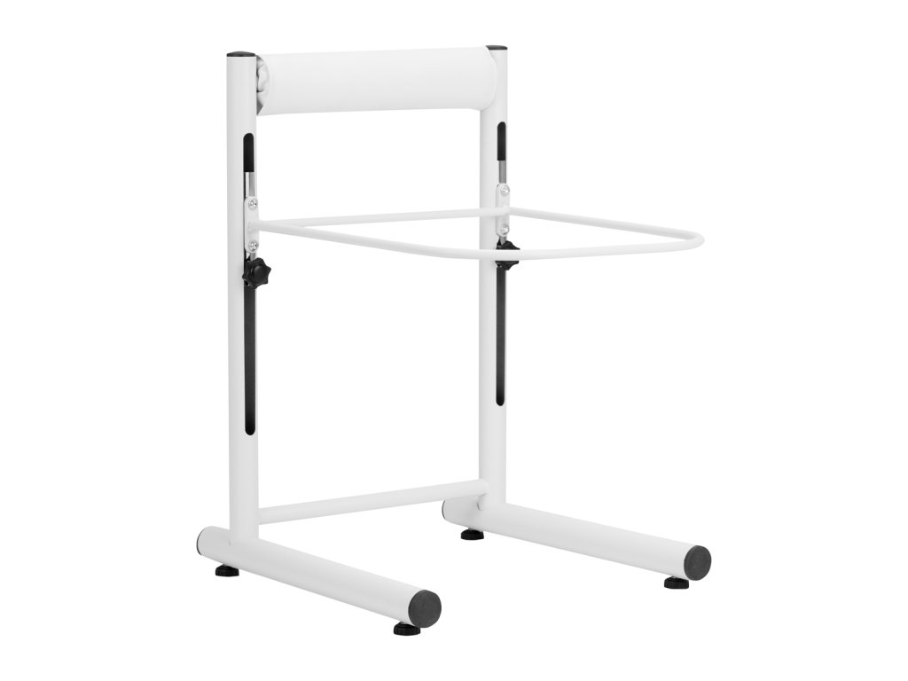 A kád pedikűrözés előtti lábáztatásra szolgál, és fokozatmentesen állítható magassága révén bármilyen székmagassághoz könnyedén igazítható. Ez nemcsak a szakember munkáját segíti, hanem a vendég számára is kényelmes pozíciót biztosít a kezelés során.