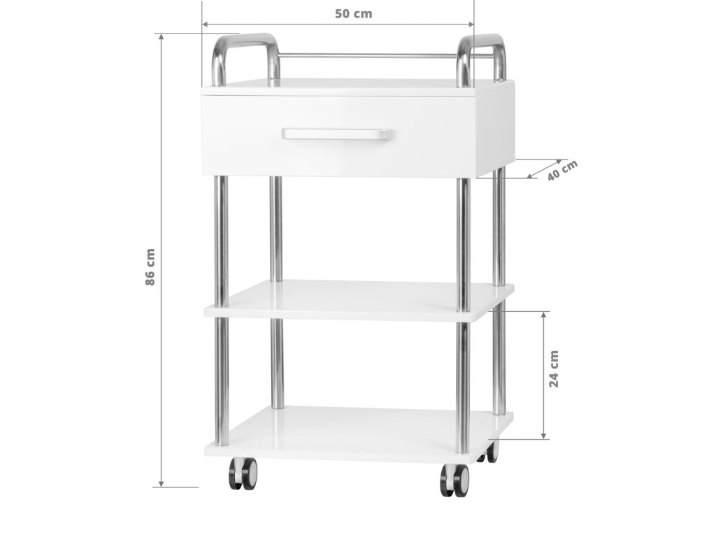 Pedikűr kocsi HELPER 6050– fehér, fiókkal és polcokkal