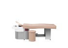 A kárpit kiváló minőségű ökobőrből készült, amely tartós, vízálló, könnyen tisztítható, és elegáns megjelenést biztosít. A görgős és nyomásos masszázsrendszer teljes relaxációt kínál, míg a hidromasszázs funkcióval ellátott akrilkád vízhőmérséklet-szabályozóval és zuhanyfejjel van felszerelve. A beépített színterápia további luxusélményt nyújt az ügyfél számára.