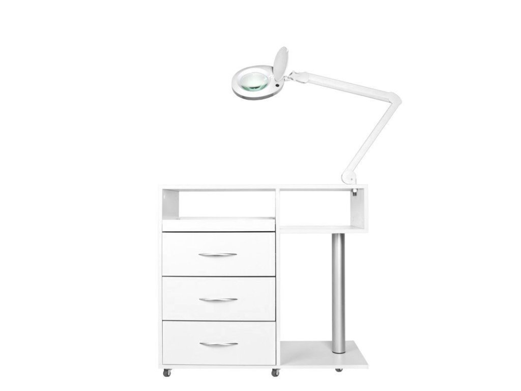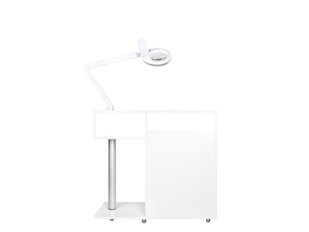 Y-300 lábápoló egység – három tágas fiókkal, kihúzható polccal és TUBE lámpatartóval felszerelve. Mobil kialakításának köszönhetően könnyen mozgatható a szalonon belül. Tartós, könnyen tisztítható anyagból készült, amely támogatja a professzionális munkavégzést.