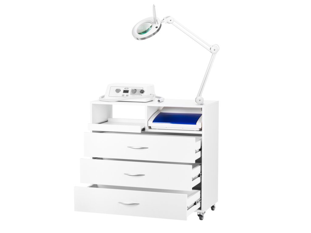 A Y-200 sada max egy professzionális, teljes körű podológiai készlet, amely minden szükséges elemet tartalmaz a kényelmes és hatékony lábápoláshoz. A készlet központi eleme a mobil, görgős Y-200 lábápoló egység, amely három tágas fiókkal, kihúzható polccal és TUBE-lámpatartóval van felszerelve. Az állítható asszisztens lehetővé teszi az eszközök és termékek egyszerű elérhetőségét, miközben modern és letisztult megjelenést biztosít a szalonnak.