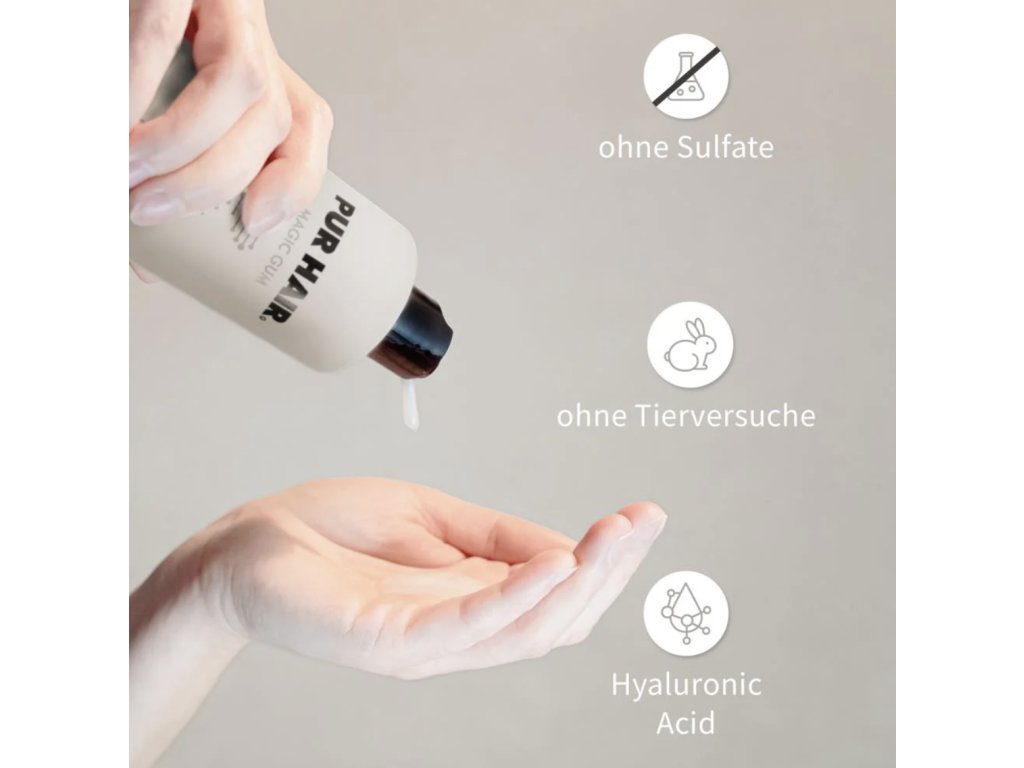 A PUR HAIR Magic Gum Repair Sampon egy kíméletes, szulfátmentes sampon, amelyet kifejezetten a száraz, sérült és vegyileg kezelt haj ápolására fejlesztettek ki.