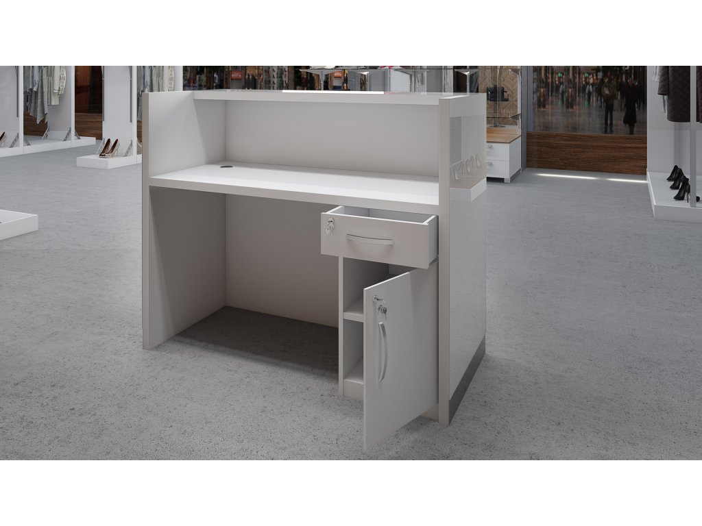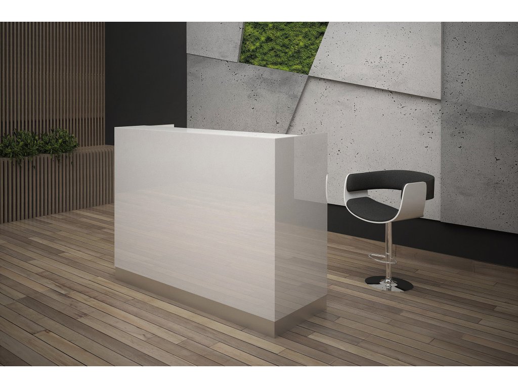 A Lacobel recepciós pult – 100 cm-es változat – kiváló választás bármely modern enteriőrbe. A Lacobel üvegből készült előlapi rész különleges tükörhatású megjelenést biztosít, amely eleganciát és fényt visz a helyiségbe. A letisztult, fehér szín modern stílust kölcsönöz, miközben könnyen illeszthető más bútorokhoz és dekorációkhoz.