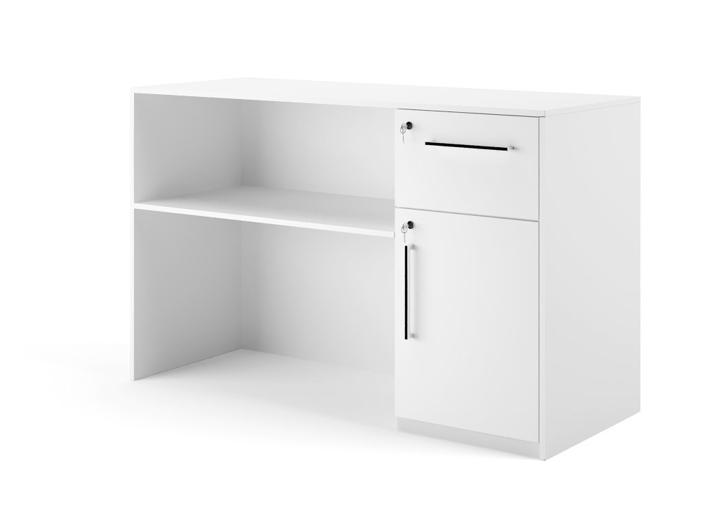 A pult praktikus kialakításának köszönhetően nemcsak esztétikus, hanem funkcionális is: zárható, teljesen kihúzható fiókkal, puha záródású szekrénnyel, valamint egy kényelmes, félmélységű polccal a lábtérben. A bútor komplett, összeszerelt állapotban kerül kiszállításra.