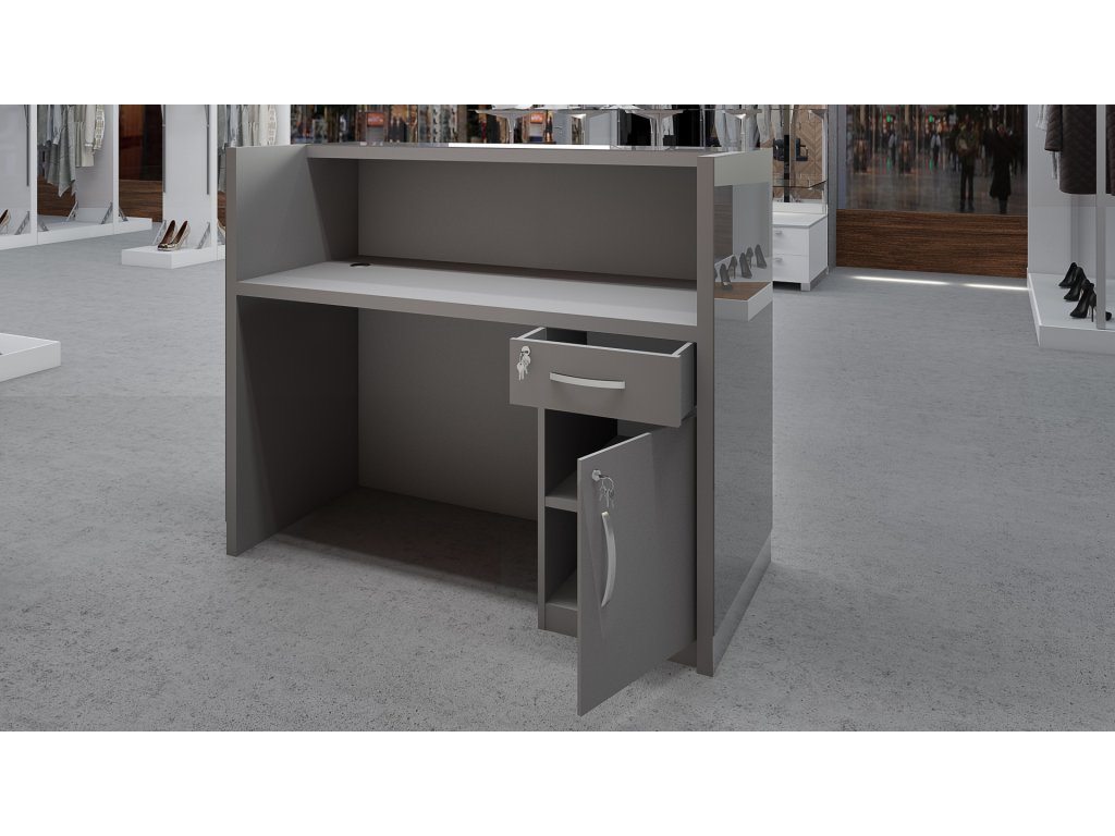 A Lacobel recepciós pult szürke változata a modern elegancia és funkcionalitás tökéletes ötvözete. A pult kiváló minőségű Lacobel üvegből készült, amely enyhén tükrös felületének és letisztult formavilágának köszönhetően stílusos és professzionális megjelenést biztosít bármely környezetben. A szürke árnyalat időtálló választás, amely könnyen kombinálható más színekkel és berendezési tárgyakkal.