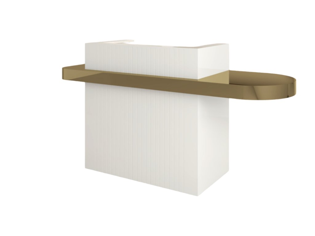 A LADA recepció matt fehér és matt krém színben rendelhető, a hosszabbító/pult rész pedig antikolt arany árnyalatban pompázik, így igazán egyedi megjelenést biztosít.