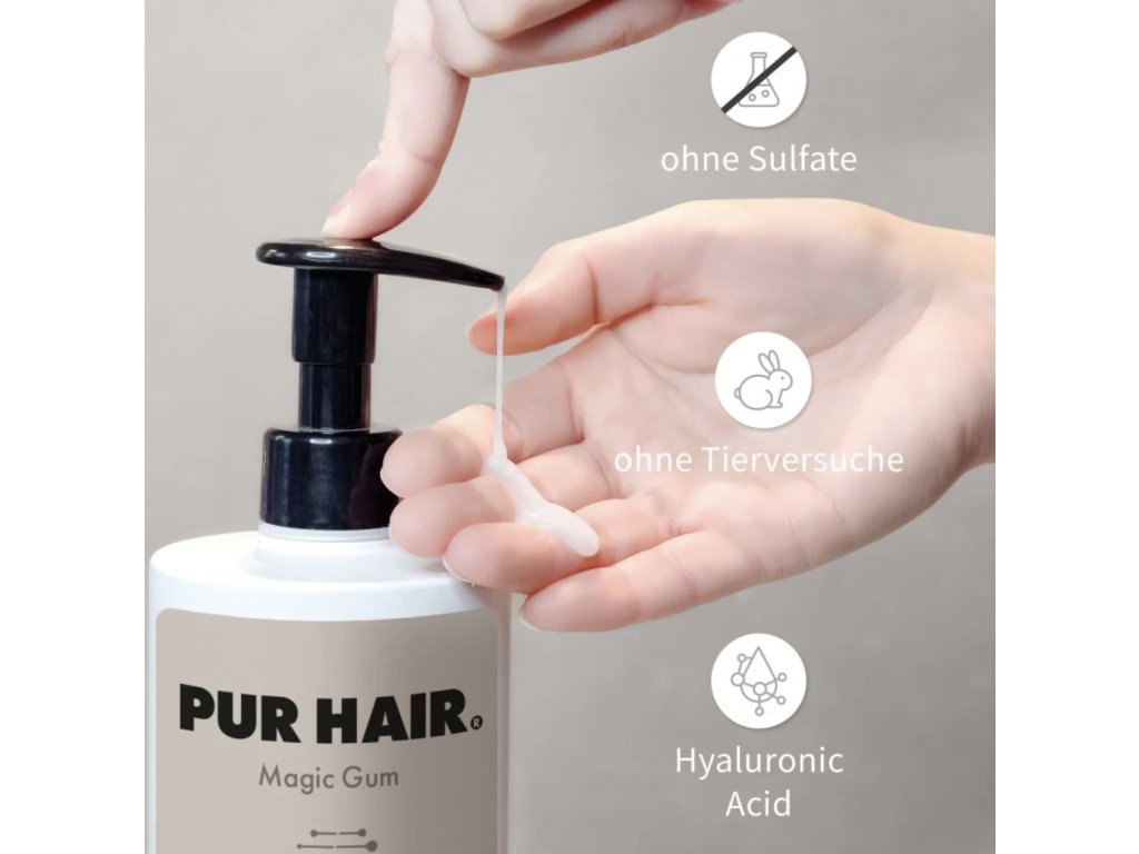 A PUR HAIR Magic Gum Repair Sampon kifejezetten a száraz, sérült és vegyileg kezelt haj igényeire lett kifejlesztve. Szulfátmentes, gyengéd formulája kíméletesen tisztítja a hajat és a fejbőrt, miközben megőrzi azok természetes hidratáltságát.