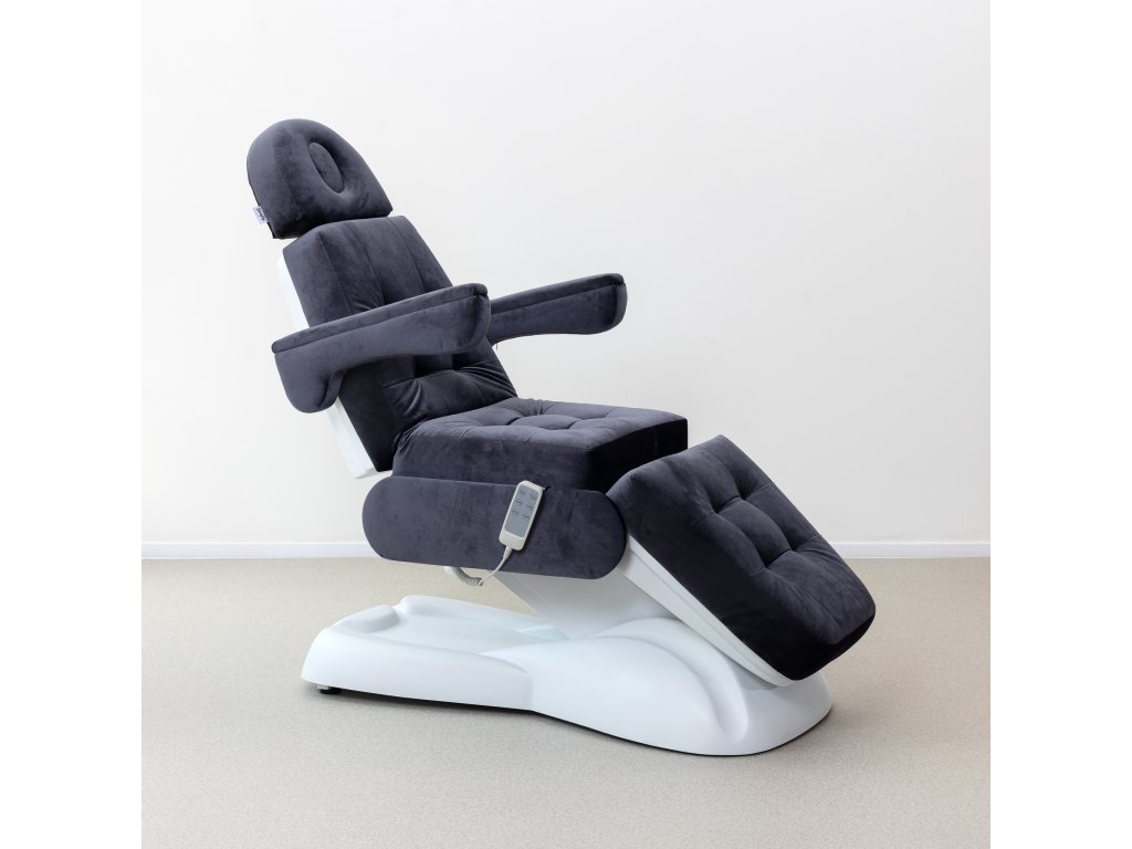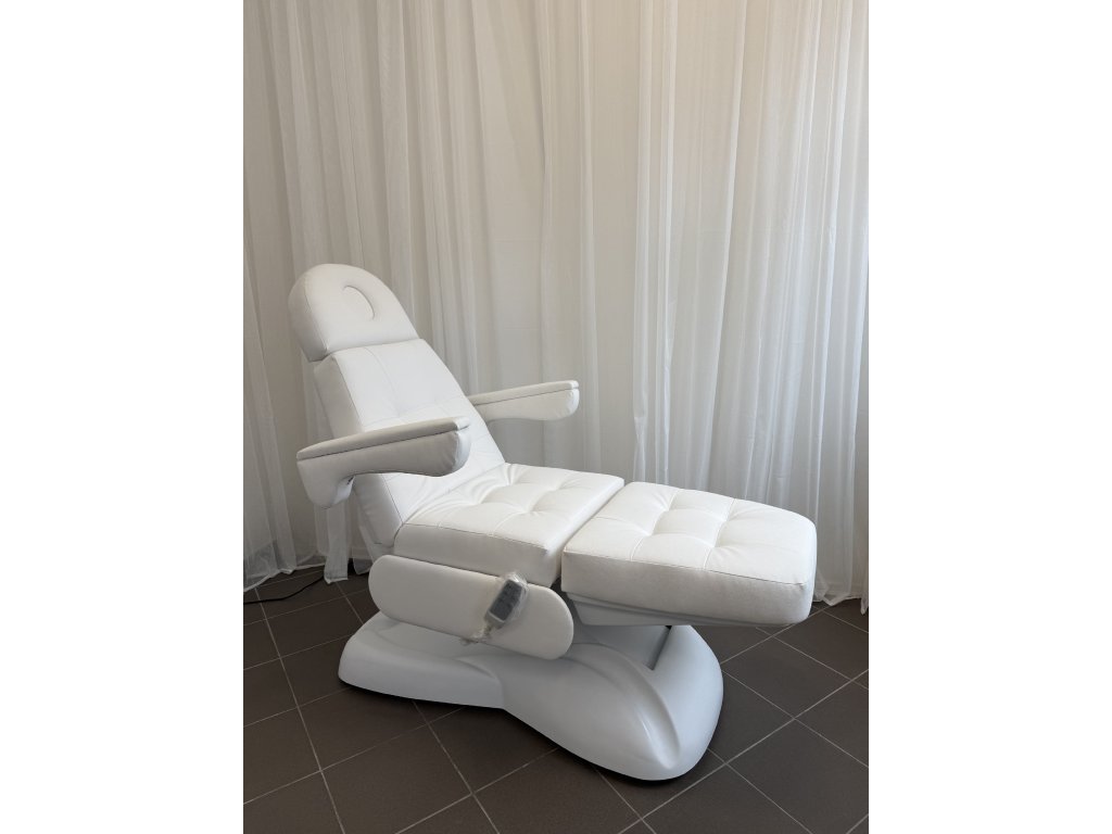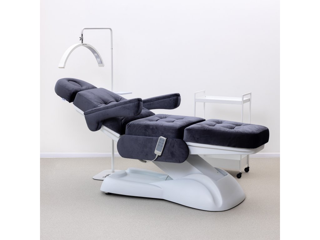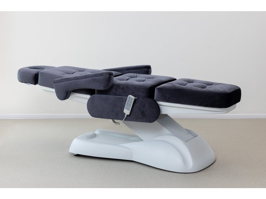 A modell különösen kényelmes, széles kialakítású fekvőfelülettel rendelkezik, és kihúzható fejtámlával is bővült. A fejtámlában található arckivágás révén masszázskezelésekhez is ideális. A karfák 180°-ban elfordíthatók, illetve teljesen eltávolíthatók, így bármilyen kezelési pozíció könnyedén beállítható – ideális például szempilla-stylistok számára is.
