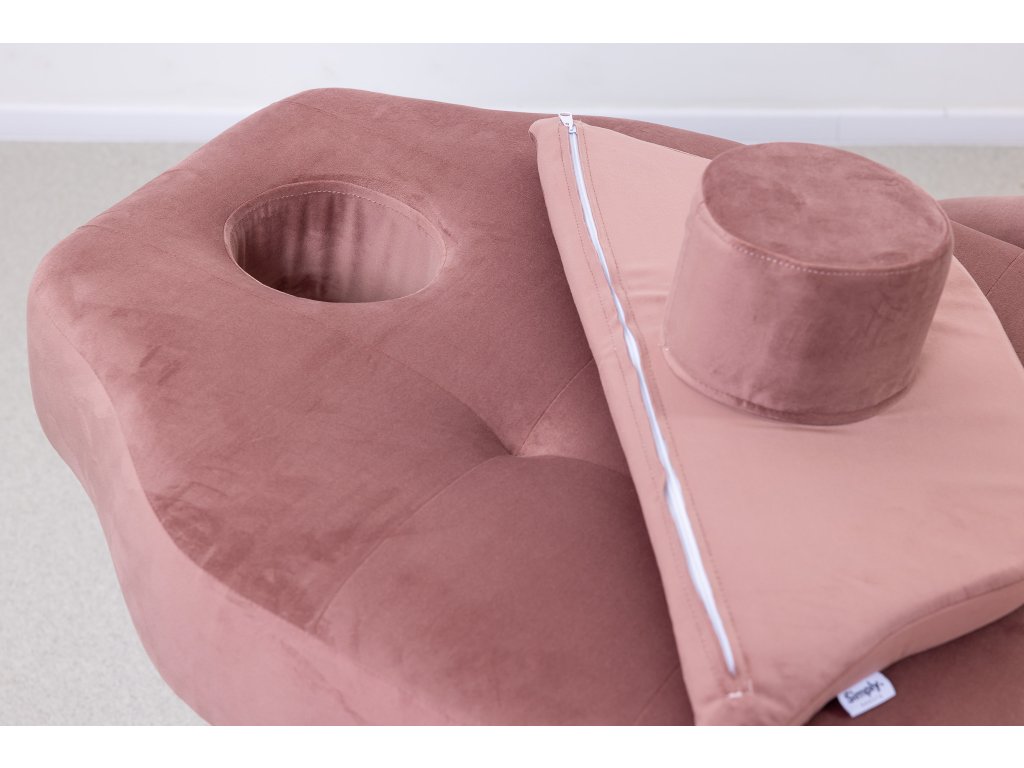 A fejtámlán található arckivágásnak köszönhetően a kezelőágy masszázs céljára is alkalmas. A karfák levehetők, így a vendégek kényelmesen elhelyezkedhetnek. A kezelőágy kárpitja magas minőségű, tartós és könnyen tisztítható műbőr, amely megfelel az EU szigorú higiéniai előírásainak – alkoholmentes tisztítószerrel tisztítható.