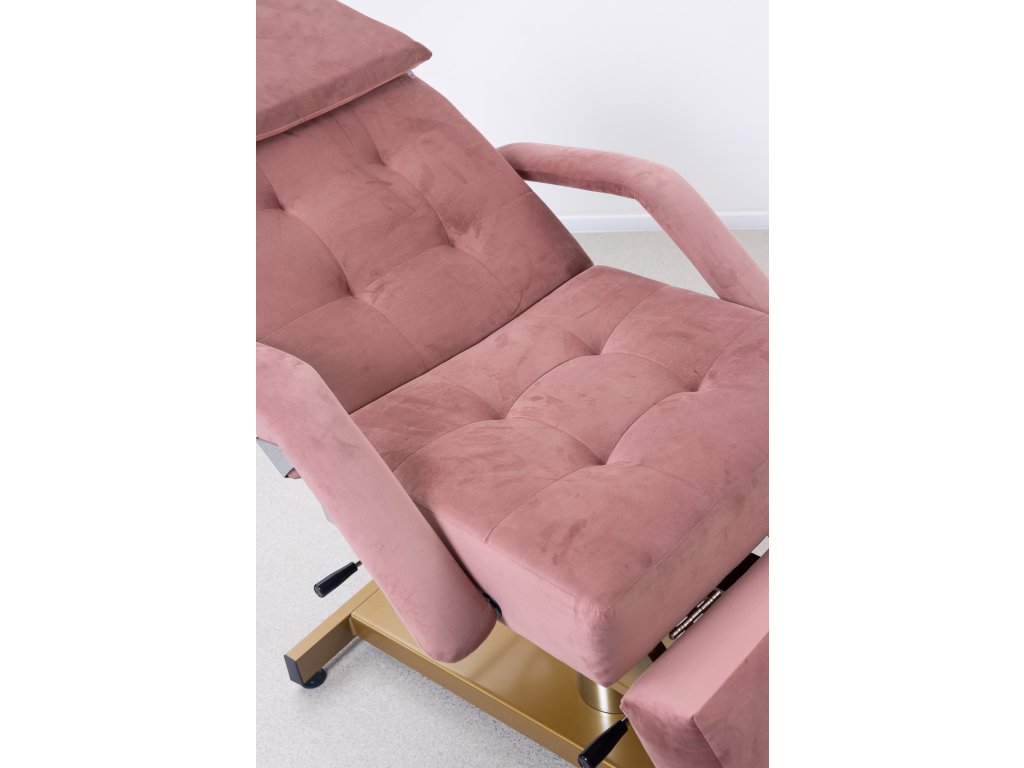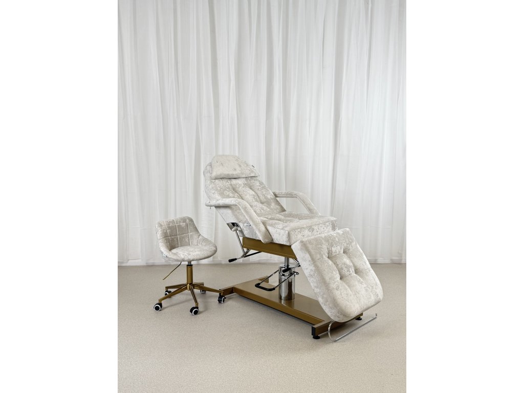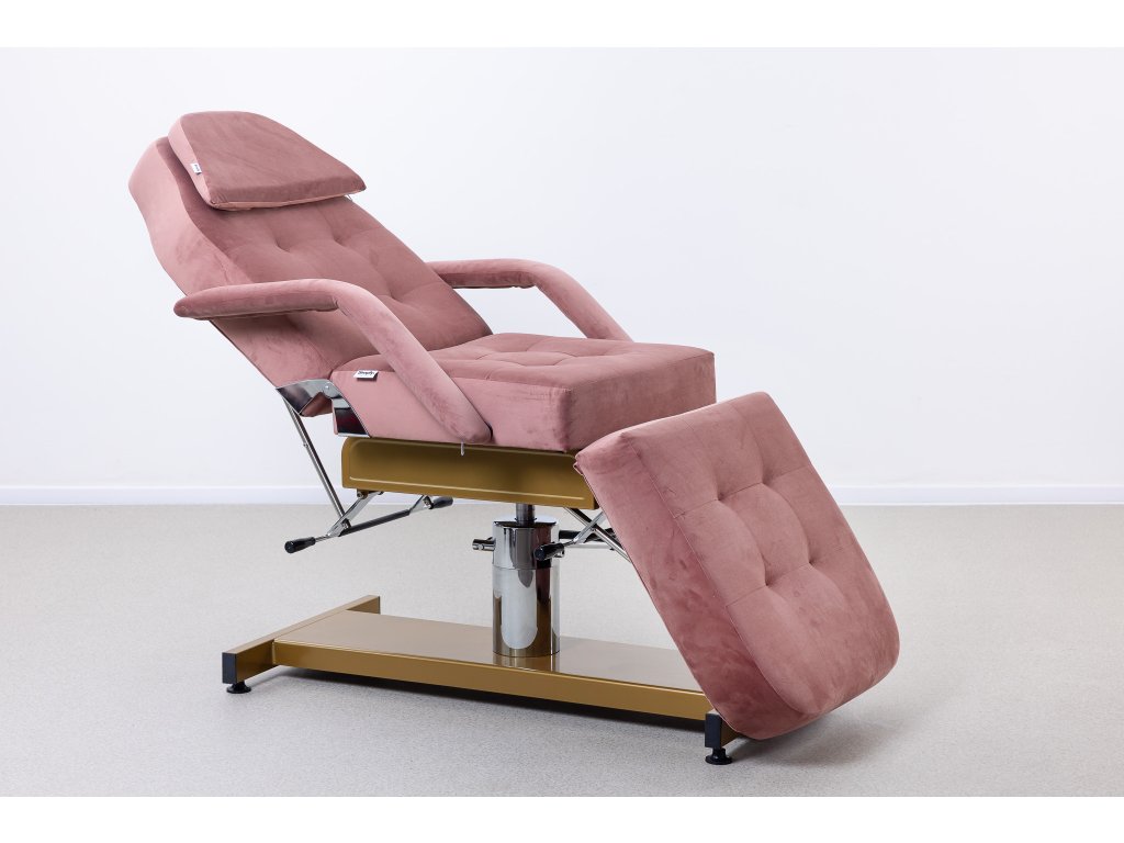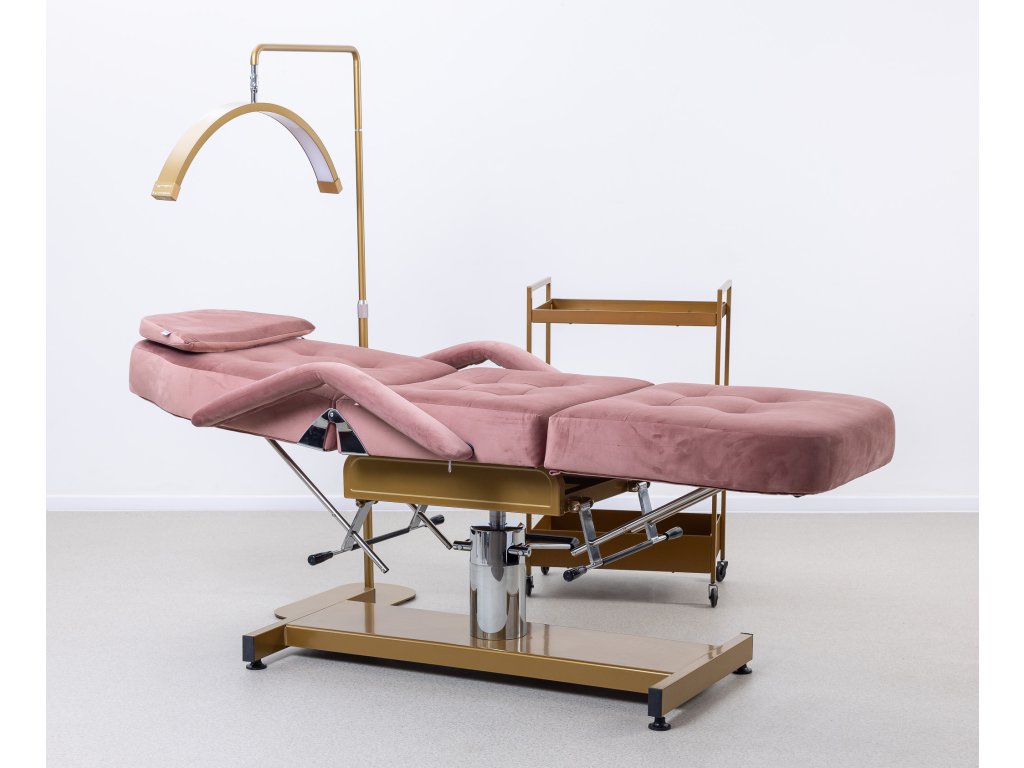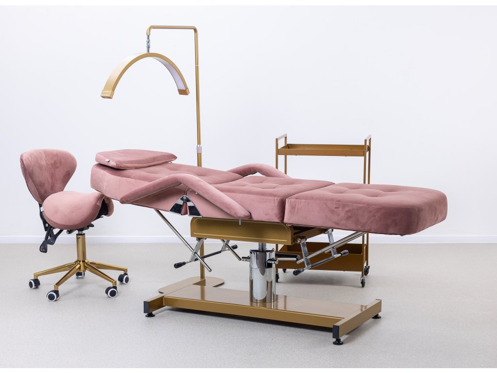 A kezelőágy teljesen újrakárpitozható, hogy tökéletesen illeszkedjen szalonja stílusához, miközben a letisztult dizájn és a választható színű (fehér, fekete vagy arany) porszórt fém talp gondoskodik a prémium megjelenésről. Az arany színű talp külön felár ellenében rendelhető.