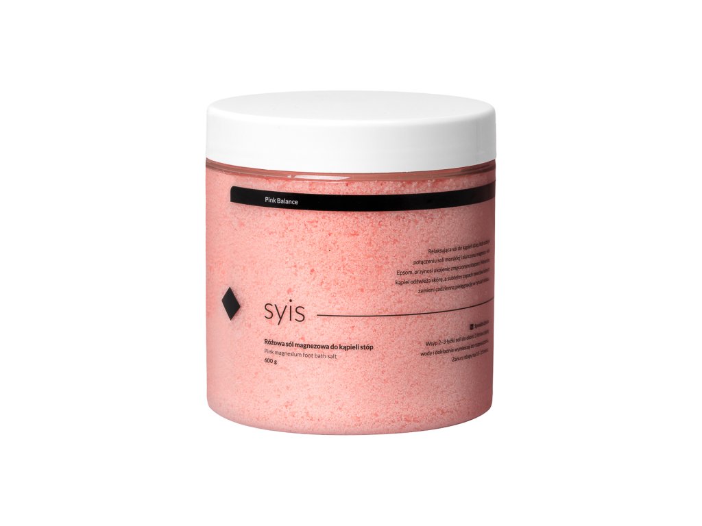A Syis Pink Balance professzionális lábfürdő só fáradt és igénybevett lábak relaxáló ápolására készült. A tengeri só és az Epsom só (magnézium-szulfát) kombinációja biztosítja a bőr tökéletes frissítését, regenerálását és könnyed érzését.