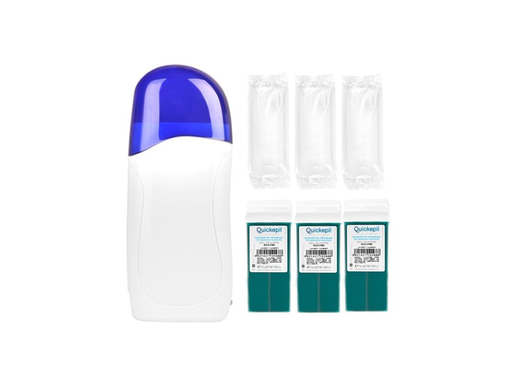 A szett tartalmaz egy 100 g-os QUICKEPIL azulénes roll-on viaszt, amely különösen alkalmas az érzékeny bőr kezelésére. A viasz gyorsan hűl, vékony rétegben terül, csökkenti az égető érzést, és a csíkokkal egyszerűen eltávolítható.