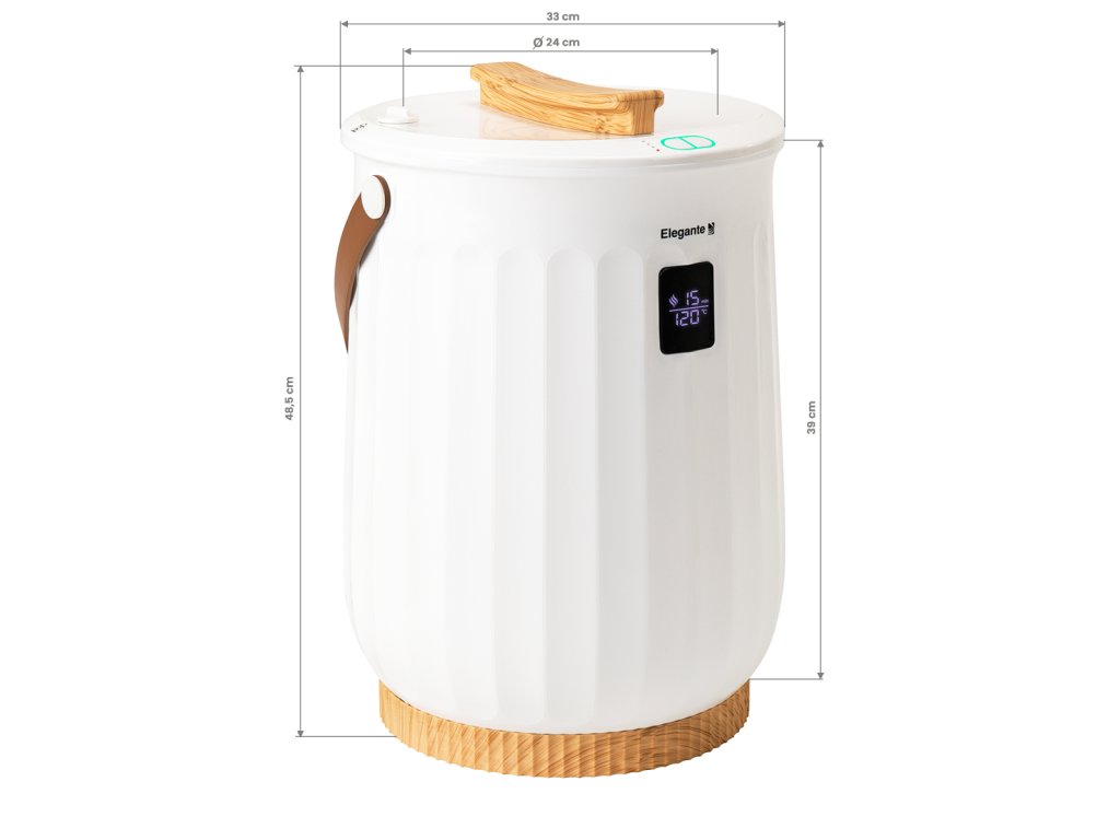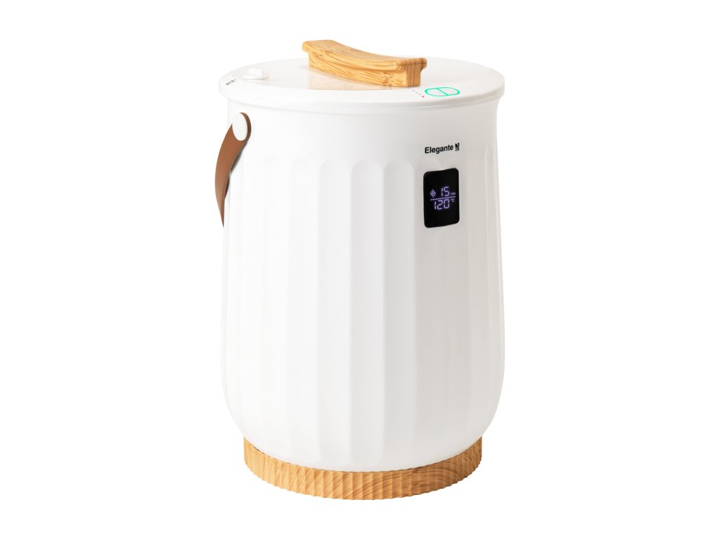 Az Elegante E18 törölközőmelegítő lehetővé teszi két nagyméretű törölköző egyidejű melegítését, biztosítva a tökéletes hőeloszlást minden használat alkalmával. A vödör alakú kialakítás garantálja az egyenletes felmelegítést, így mindig kellemesen meleg törölközőket biztosít. A kijelzővel, hordozószíjjal és illatkorongtartóval ellátott készülék kényelmes és praktikus használatot nyújt minden nap.