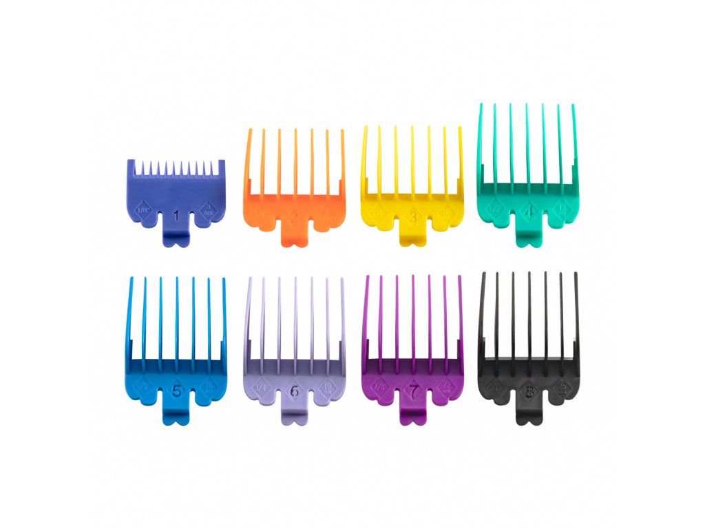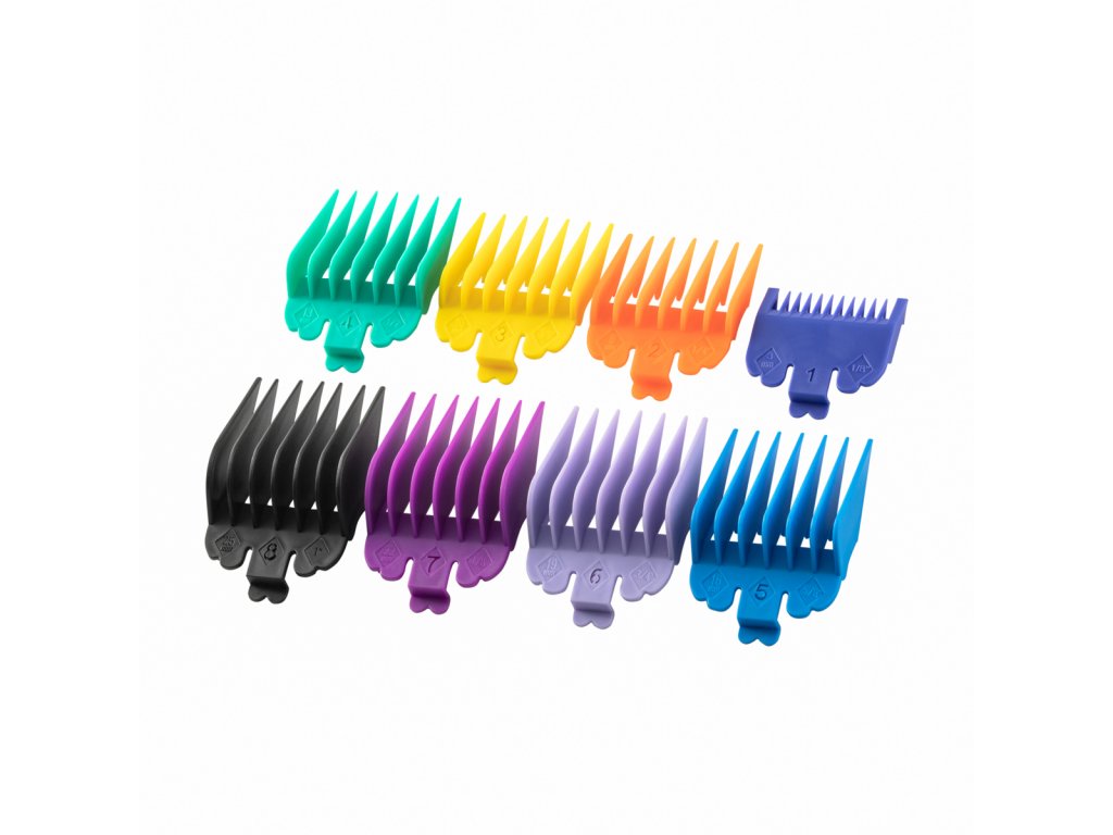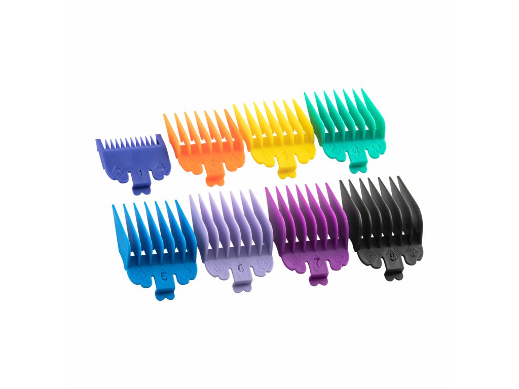 Az univerzális gépfelszerelési készlet 8 db-os változata minden fodrász és borbély számára ideális választás, akik pontos és változatos hajvágási hosszúságot szeretnének elérni. A készlet tartalmaz 8 darab különböző méretű vezetőfésűt, amelyek segítségével bármilyen hajstílus egyszerűen kialakítható.